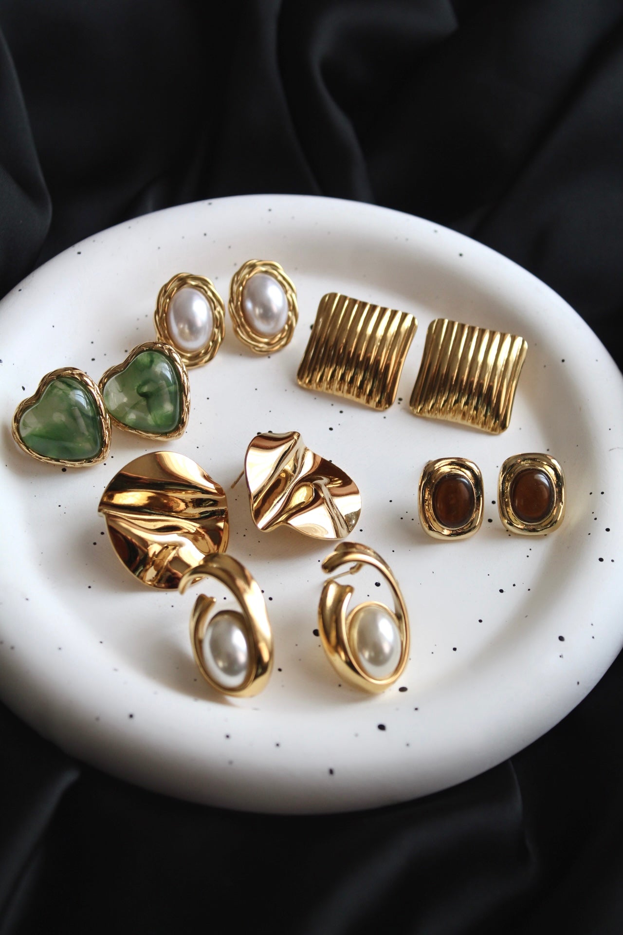 Σκουλαρίκια καρφωτά καρδιές με χρυσές λεπτομέρειες